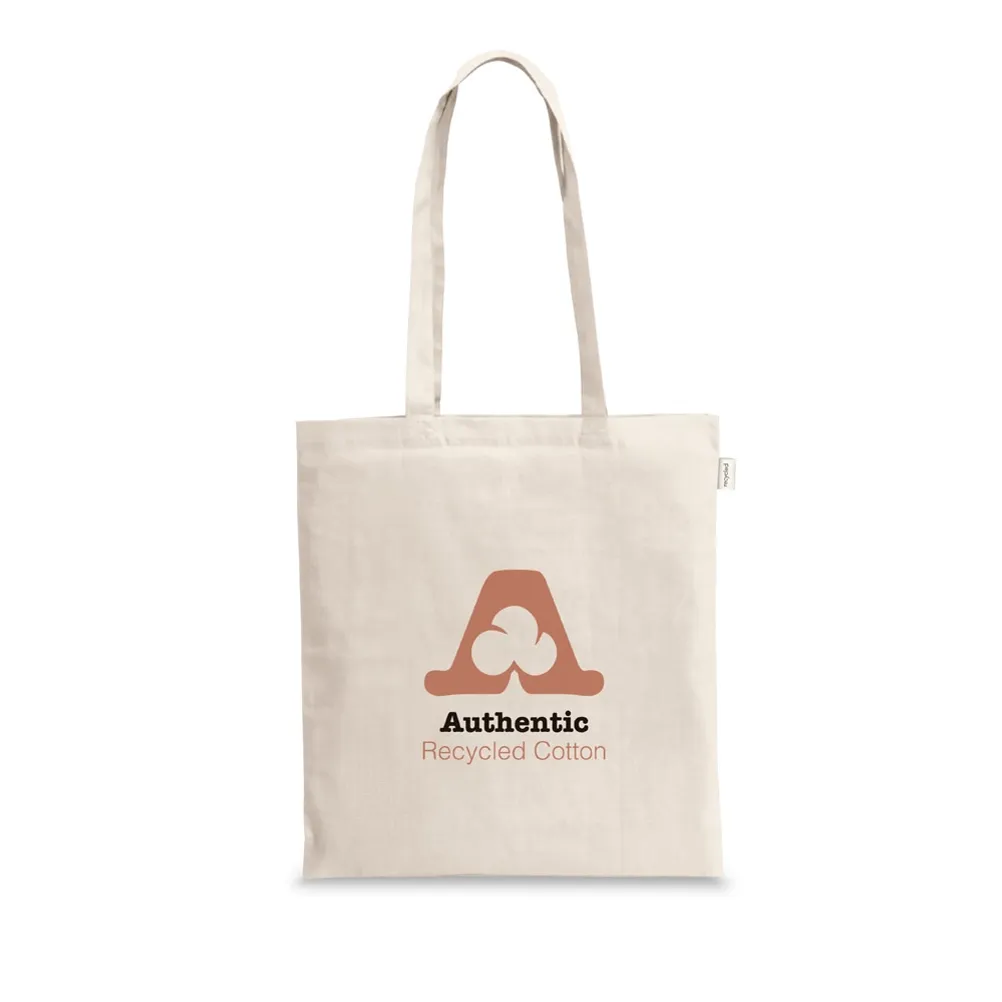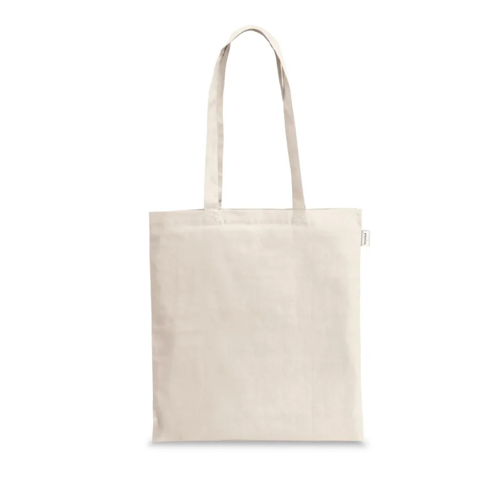Sacola 100% algodão reciclado (180 g/m²) com alças de 65 cm. 380 x 420 mm