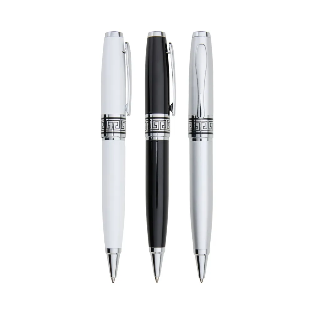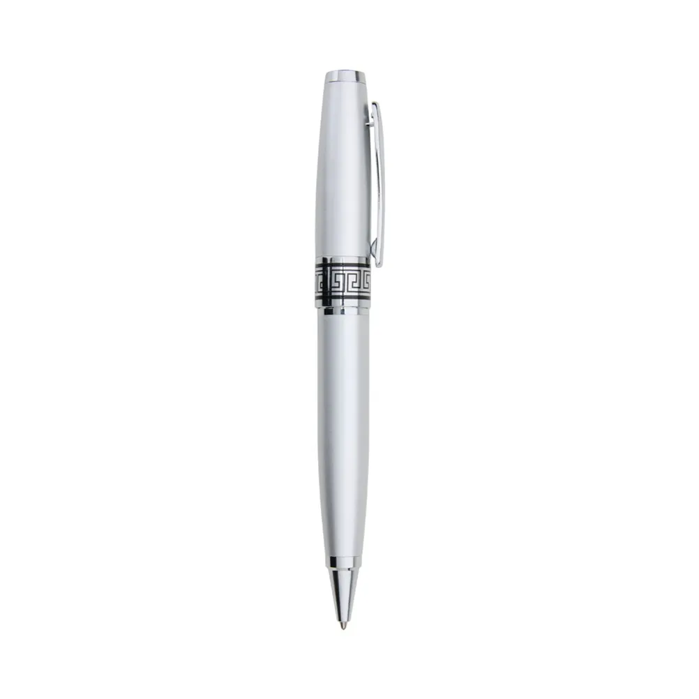 Caneta metálica, acionamento por rotação e carga esferográfica azul 1.0mm.