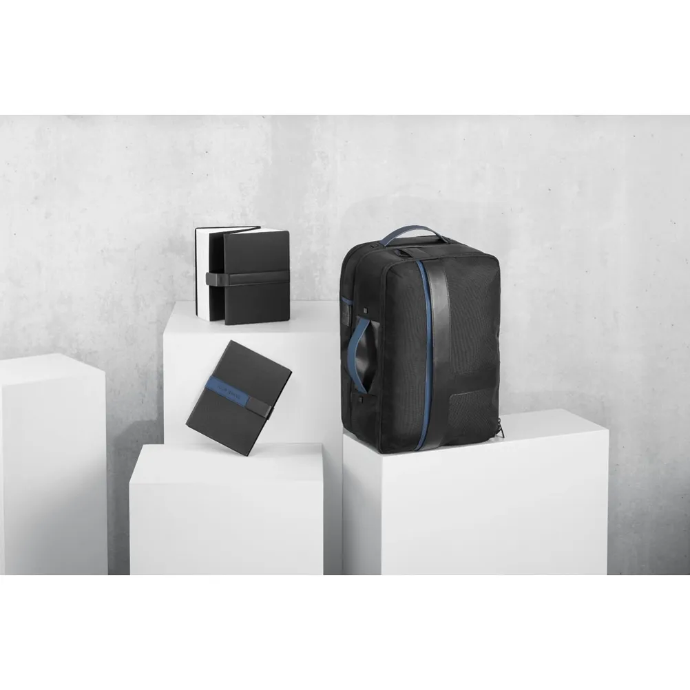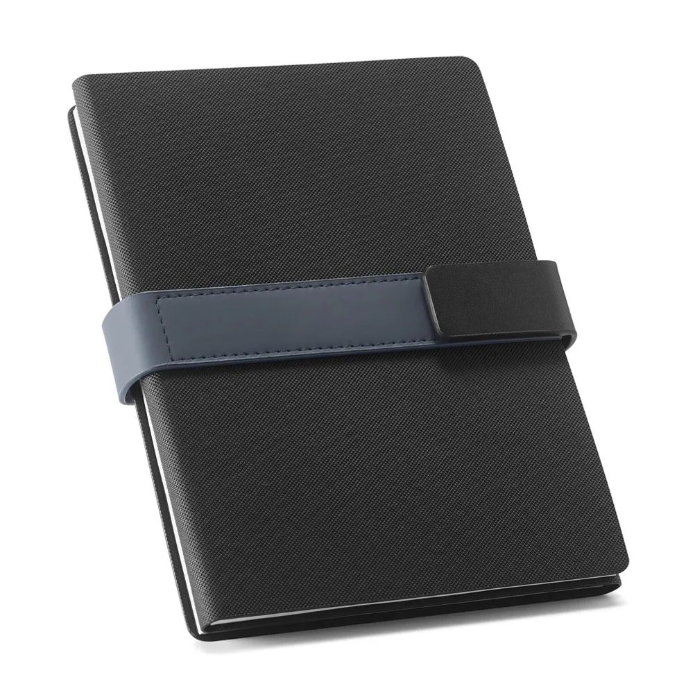 O DYNAMIC é um caderno A5 idealizado e desenhado para ser um objeto funcional e prático com um toque de elegância citadina. Possui dois blocos de escrita diferentes, em cada um dos lados, que podem ser utilizados e fechados, separadamente. Possui sistema de fecho com ímã na faixa que envolve o bloco. A faixa, tem uma cor diferente em cada um dos lados, permitindo a sua identificação, conferindo uma certa irreverência ao produto. O material exterior é em polipele de elevada qualidade e 1680D, texturado e plano. Possui 128 folhas em papel proveniente de gestão florestal sustentável, que se dividem proporcionalmente em folhas lisas e folhas pautadas, identificáveis pela faixa exterior. O DYNAMIC torna-se único pelo seu design mas também pela sua funcionalidade, em que a dualidade o torna num objeto perfeito para todos os momentos do dia-a-dia. Fornecido em caixa presente. 150 x 210 mm | Caixa: 200 x 30 x 265 mm