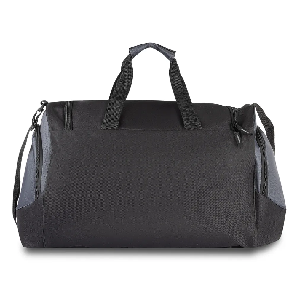 Mala esportiva em tecido poliéster, compartimento interno para roupas e compartimento externo para roupa suja. Na parte inferior da mala possui 4 borrachas de apoio para que a mala não encoste diretamente no chão. Zíper frontal e bolsos laterais, com alça de mão e ombro. Dimensão Produto: 29x39x58cm Peso do Produto: 0,490kg Capacidade: 65,5L Quant. por Caixa: 25pçs Dimensão Caixa: 47x36x41cm Peso da Caixa: 13kg