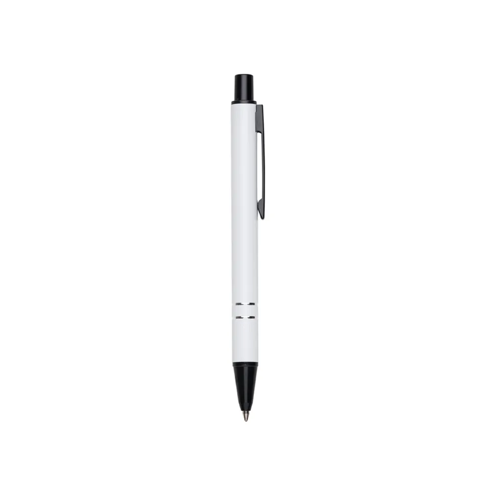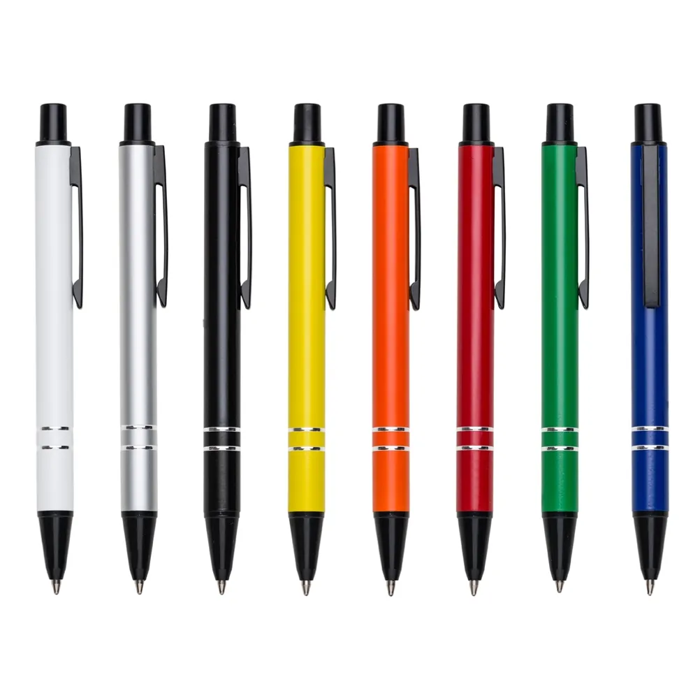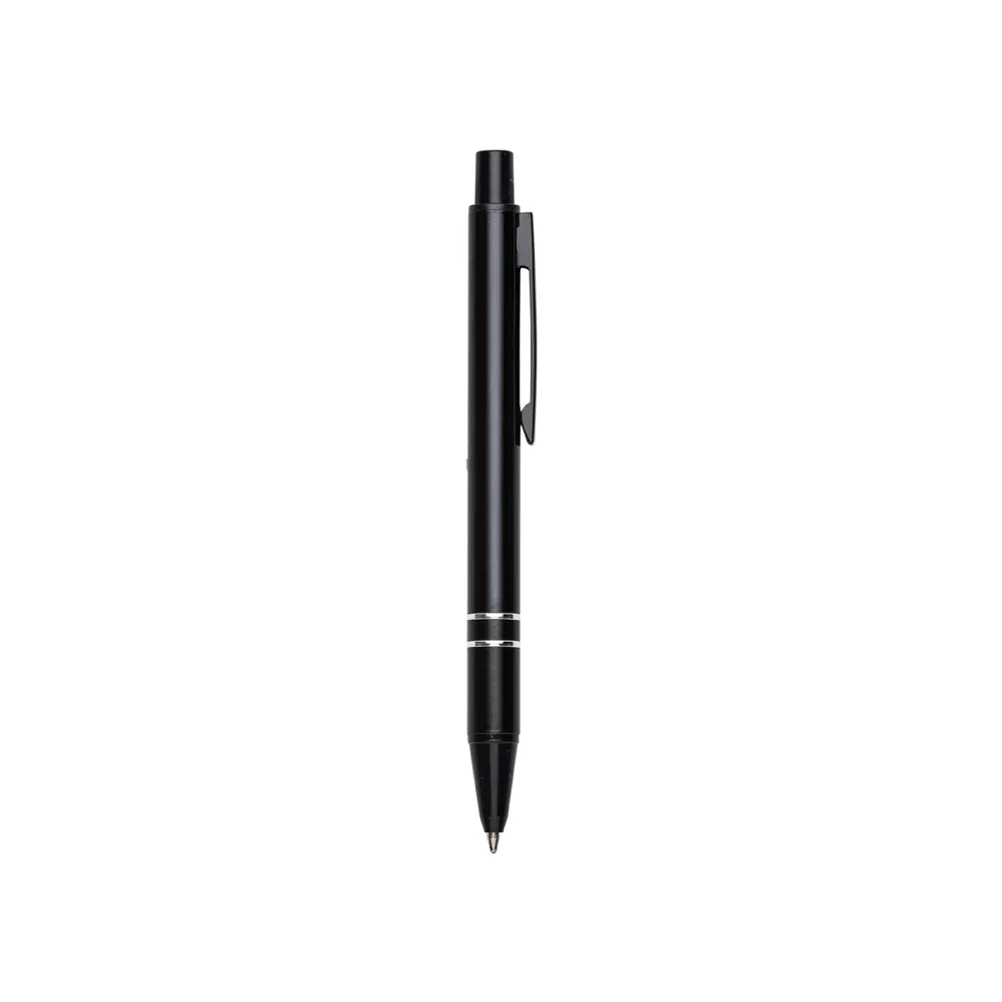 Mini caneta semimetálica com carga esferográfica azul e acionamento por clique. OBS.: PEDIDO APENAS MÚLTIPLO DE 50 PEÇAS!