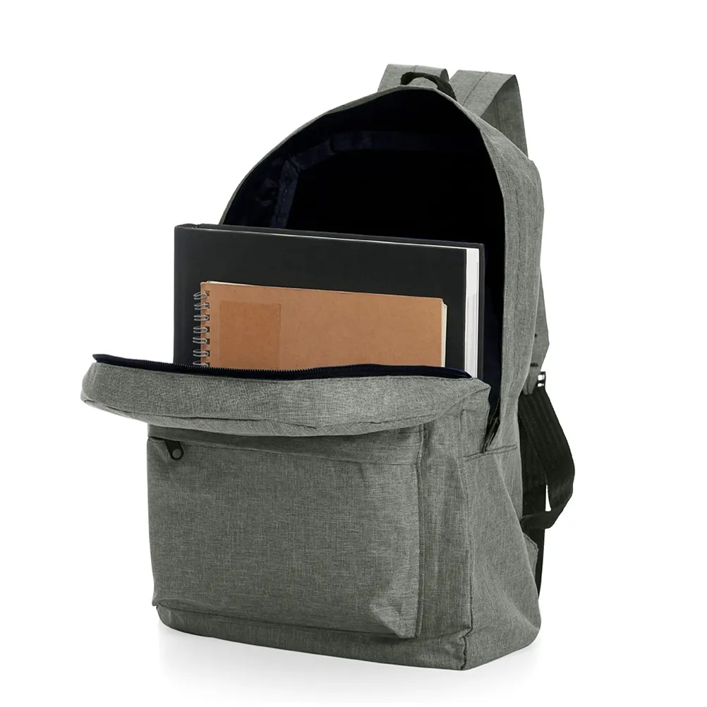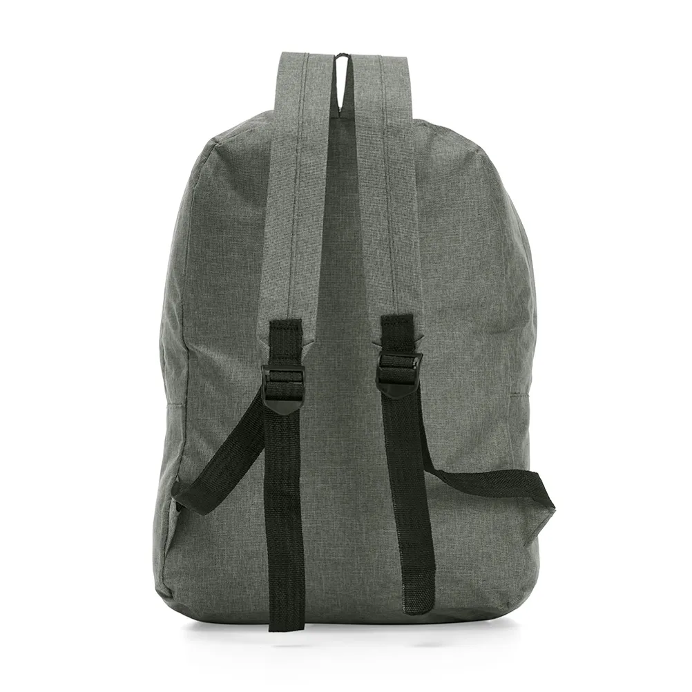 Mochila confeccionada em Nylon 14 Litros. Contém bolso frontal com zíper, alça de mão em nylon e alças para as costas ajustáveis.