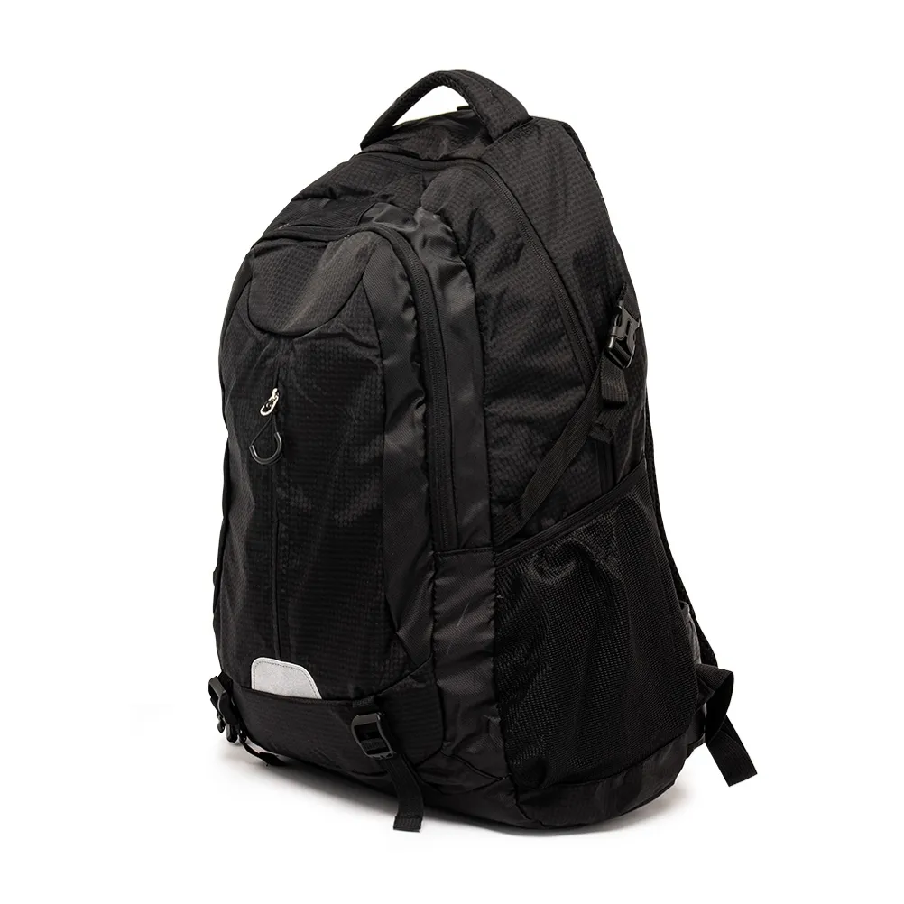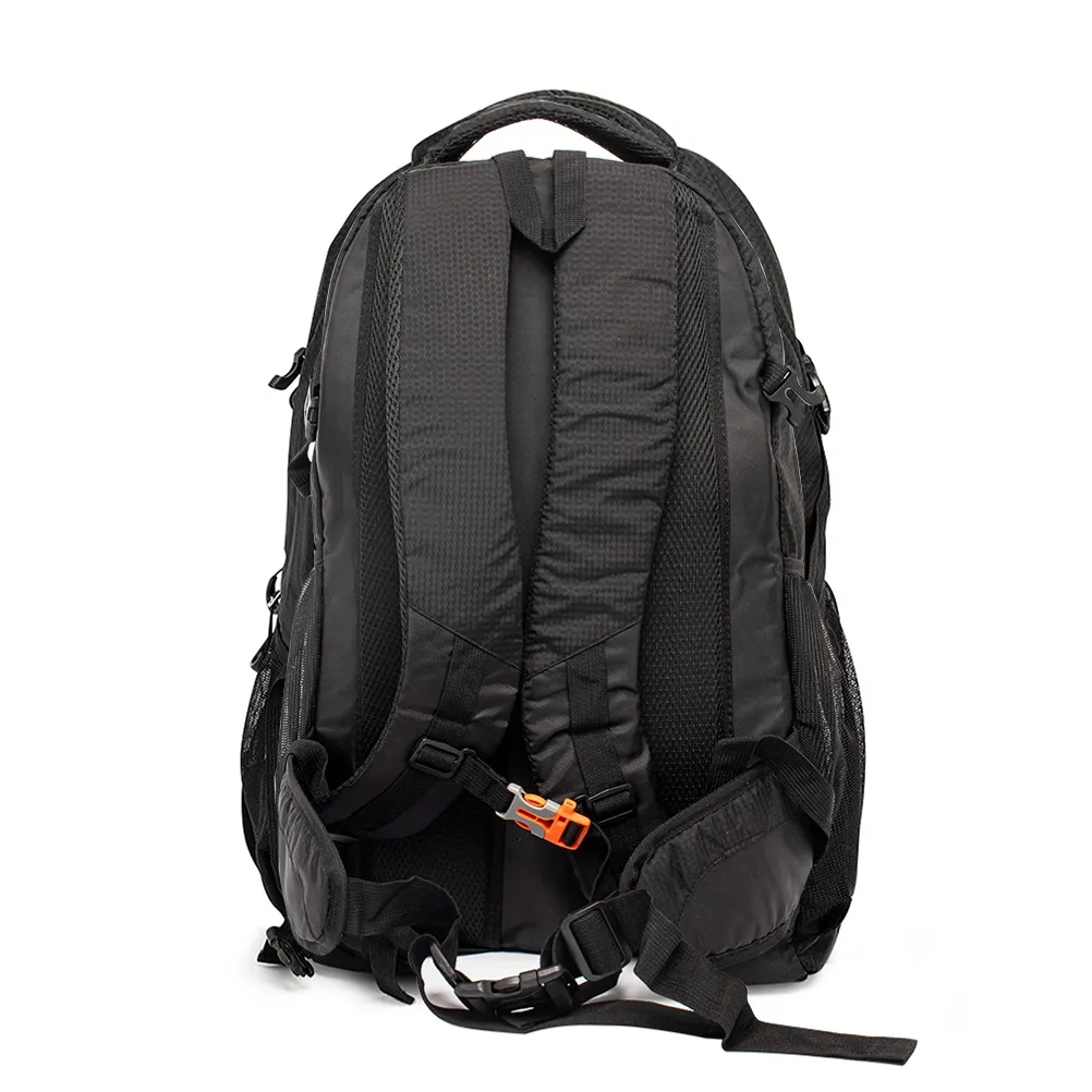 Leve tudo e mais um pouco com a nossa mochila de poliéster de 43 litros. Espaçosa e eficiente, possui três compartimentos, sendo o principal com um bolso para notebook de até 15,6 polegadas. Conta com divisórias internas para manter acessórios organizados e bolsos laterais de tela para acesso fácil aos itens essenciais. Esse modelo possui revestimento espumado nas costas para maior conforto e, para sua segurança, tem um detalhe refletivo na parte frontal, aumentando sua visibilidade em condições de pouca luz. Além disso, há um apito integrado em uma das fivelas, e as alças de compressão e compensação ajudam a distribuir o peso de forma equilibrada.