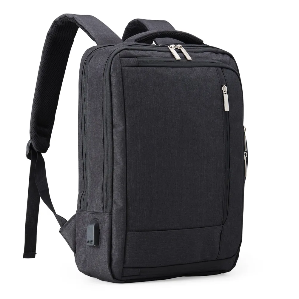 Mochila de poliéster impermeável 19 litros com 4 compartimentos, sendo o principal com bolso para notebook 15,6 e compartimento com bolso sanfonado, ideal para documentos. Com divisórias internas para acessórios, a mochila possui suporte externo USB, alça para engate em malas de viagem e duas alças de mãos, sendo uma delas para o transporte da mochila no formato pasta.