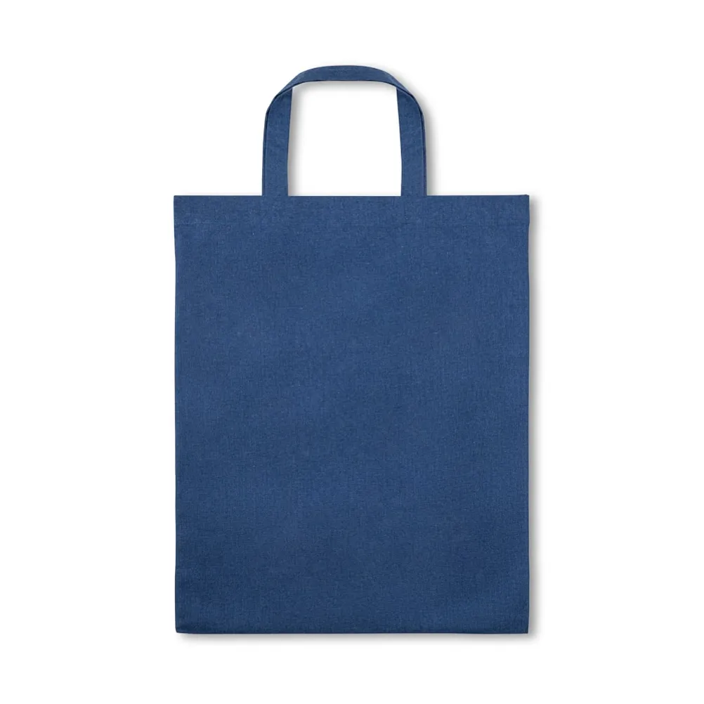 Sacola dobrável em algodão (140 g/m²) composta por 50% algodão e 50% algodão reciclado, com alças de 38 cm. Aberto: 380 x 470 mm | Dobrado: 135 x 205 mm
